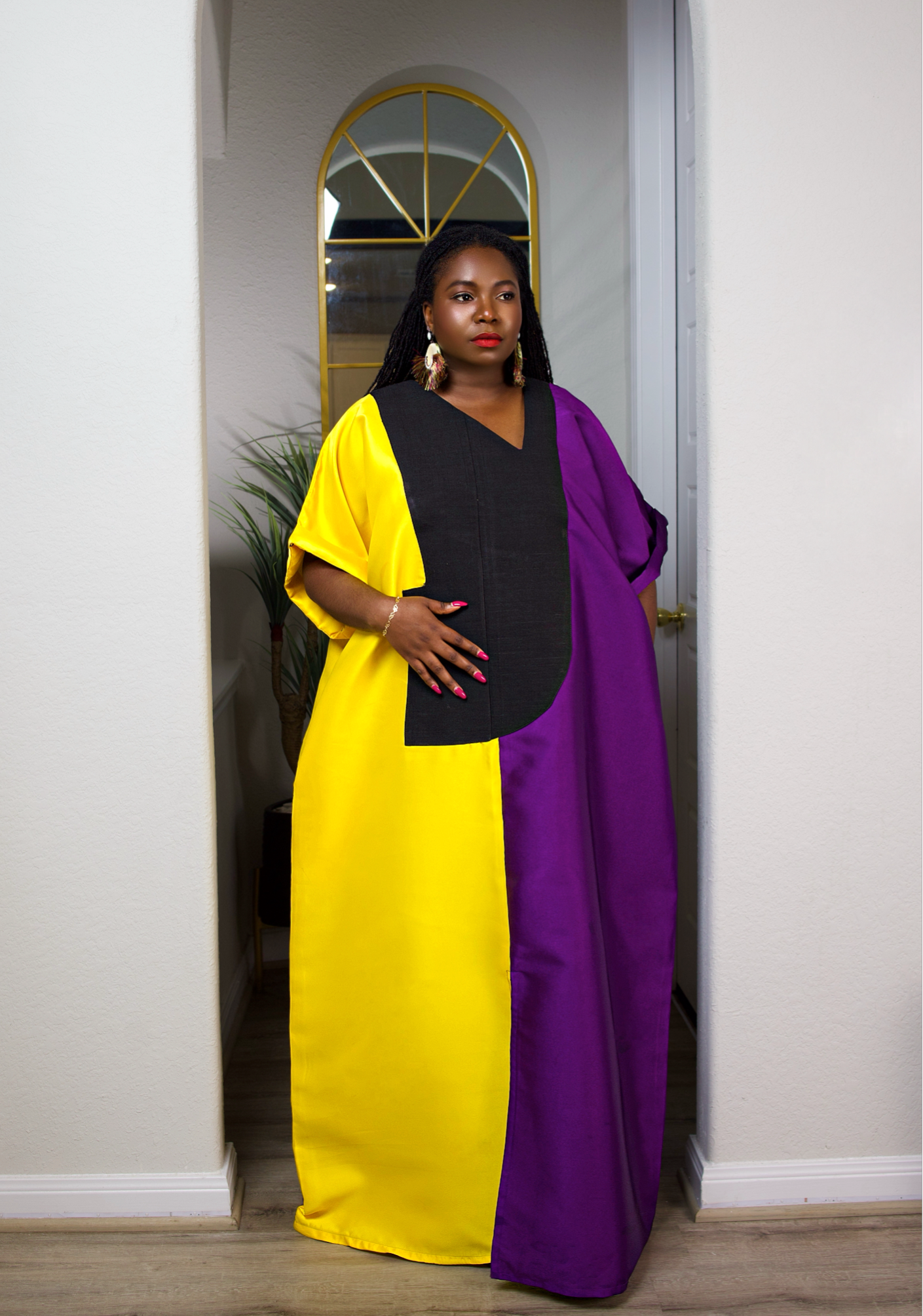 Escape into a world of pure indulgence with Makeda. Treat yourself to a luxurious experience that will never be forgotten. Makeda bubu is an exquisite African maxi dress made from the finest of silk and the iconic Yoruba Aso Oke cloth. Imagine gliding through the room with flowing fabric brushing your feet and a vibrant color that radiates from your body. Elevate your wardrobe with this elegant piece. Feel beautiful and unique in a garment that embraces traditional values and celebrates the uniqueness of the African aesthetic in a contemporary way.